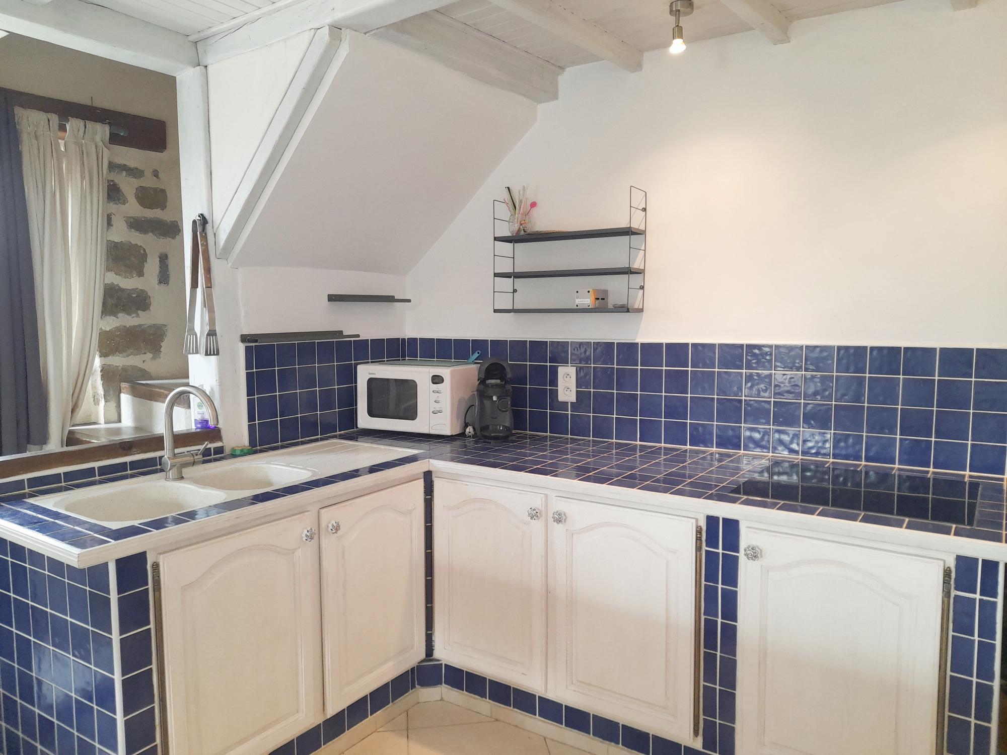 Dit verblijf geeft uit op de binnentuin en is geschikt voor gezin tot 4 personen. Op het gelijkvloers vinden we een salon met eethoek, open keuken en badkamer. In de mezzanine op de eerste verdieping zijn er twee slaapkamers.